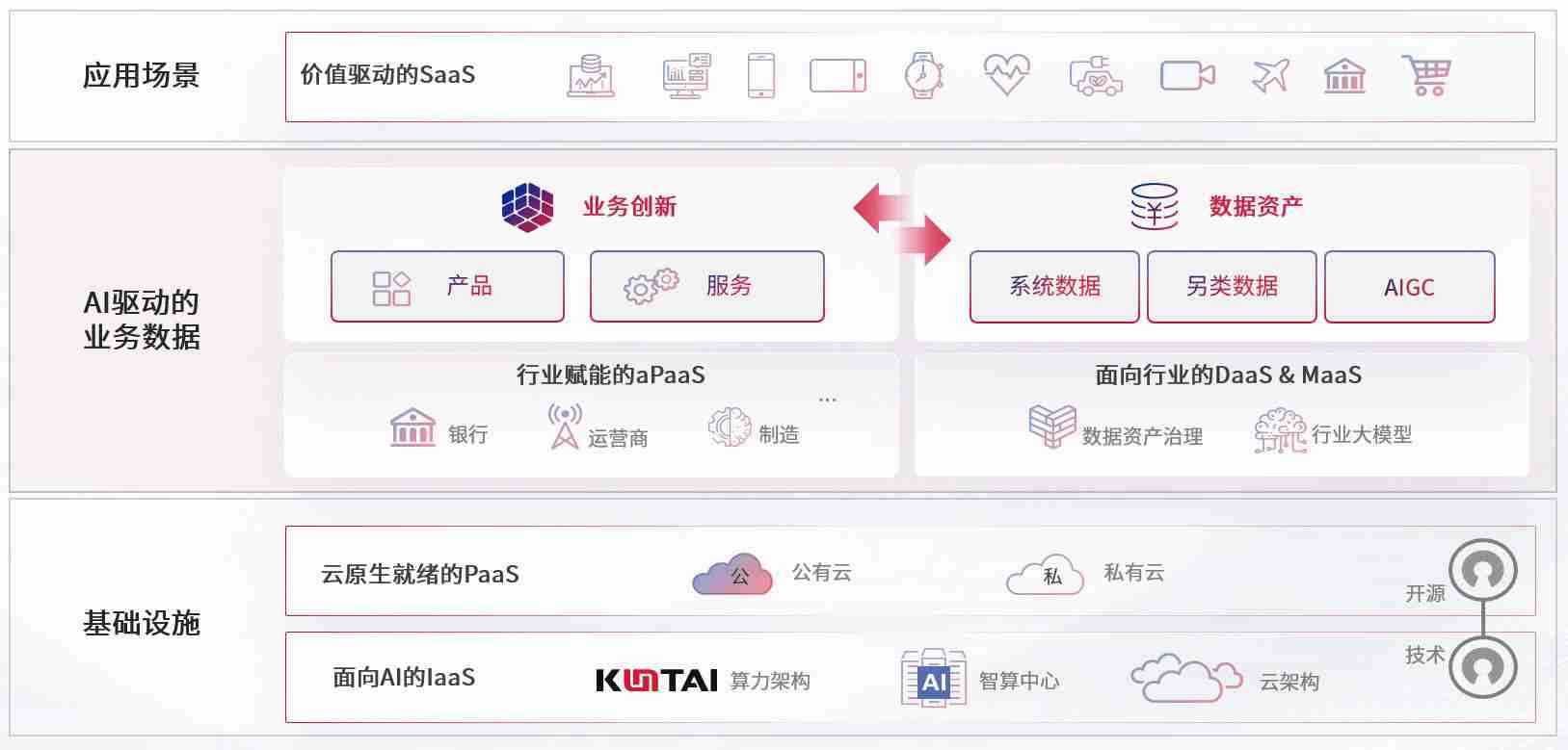 数字时代,,围绕企业数字化转型的关键要素,,大发平台数码开创性的提出数云融合战略和技术体系框架,,,,着力在云原生、、数字原生、、、AI原生和信创产业上架构产品和服务能力,,,,为处在不同数字化转型阶段的快消零售、、汽车、、、金融、、、、医疗、、、政企、、教育、、、、运营商等行业客户提供泛在的敏捷IT能力和融合的数据驱动能力,,构建跨界融合创新的数字业务场景和新业务模式,,,,助力企业级客户建立面向未来的核心能力和竞争优势,,,,全面推动社会的数字化、、智能化转型升级。。。。